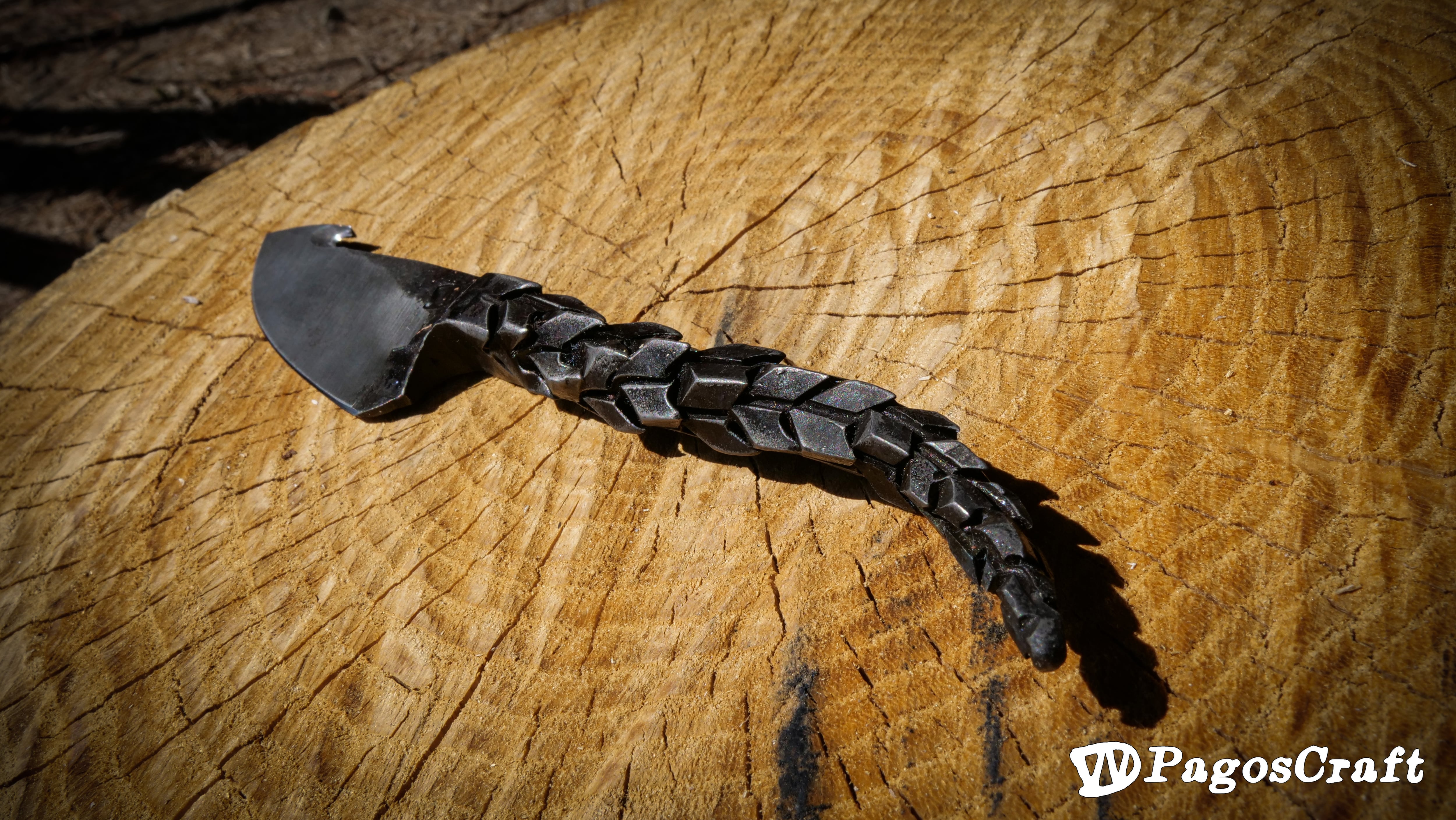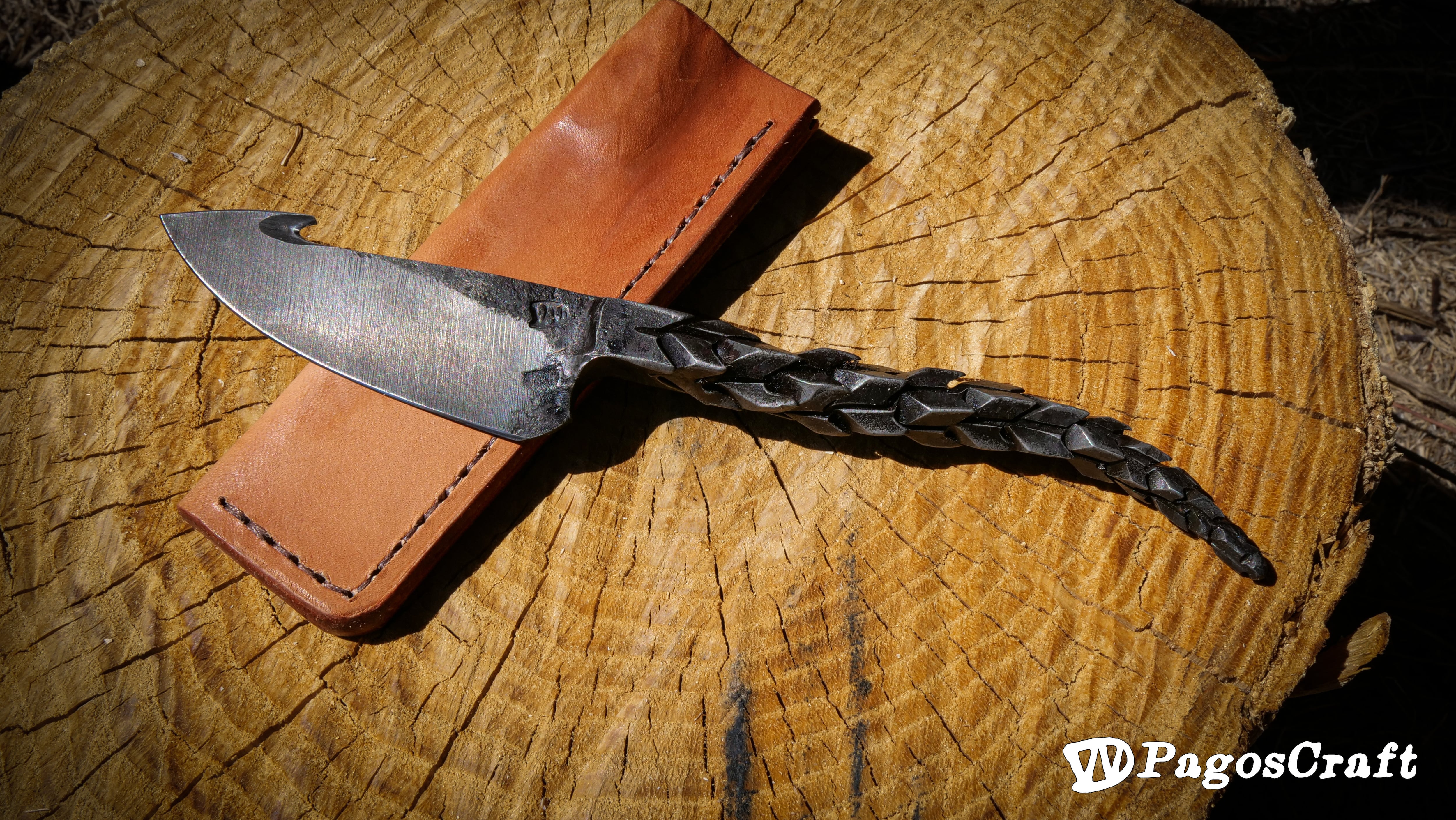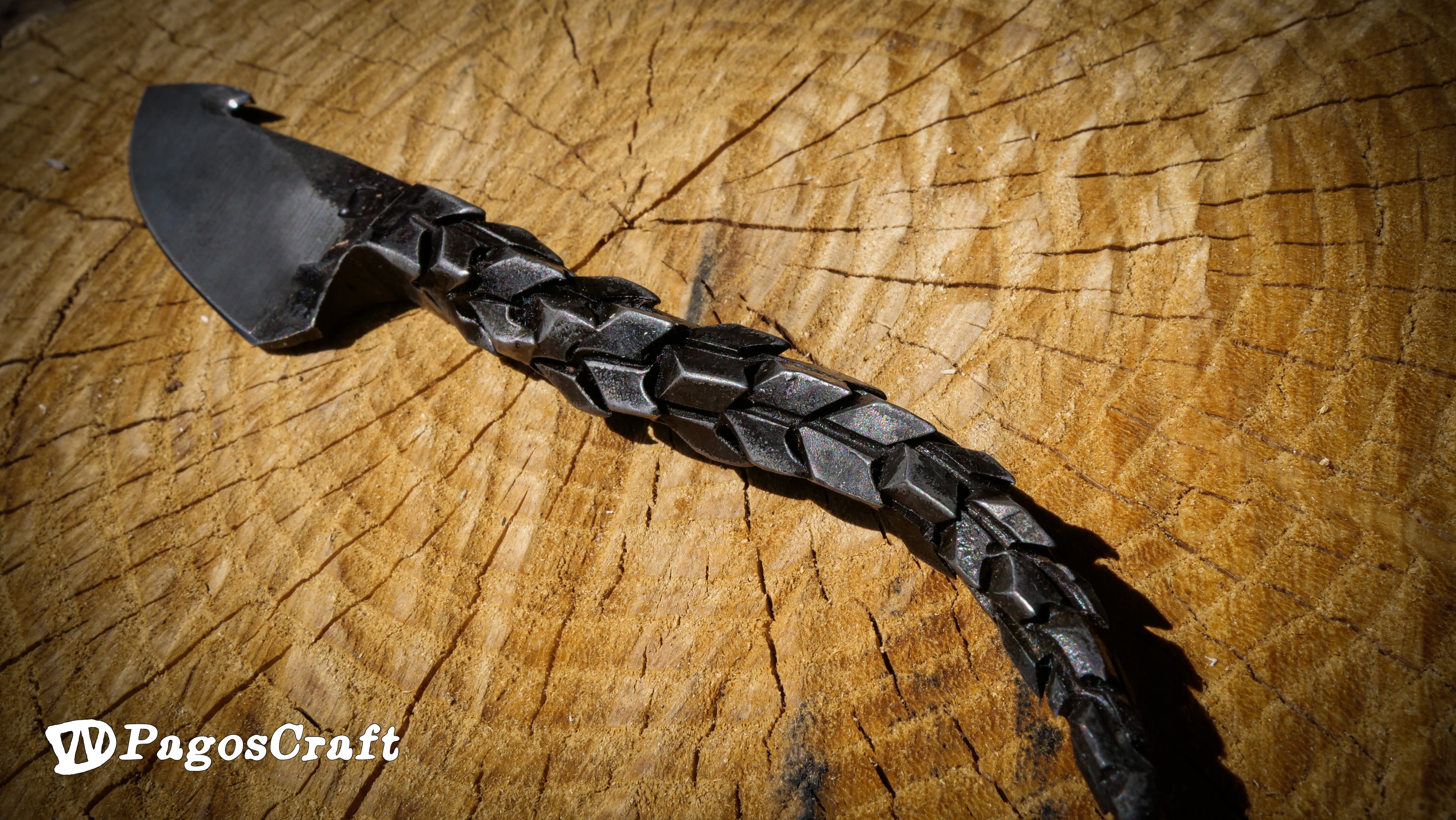 ロートアイアンの技法、ドラゴンツイストをハンドルに使用した個性的なナイフ